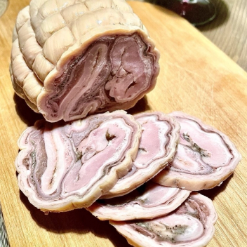Local pork charcuterie made with pig’s stomach, garlic and spices – yum!