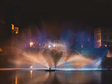 La patinoire, située sur le Minnewater (Lac d'Amour), offre une expérience féérique avec des lumières scintillantes qui se reflètent sur le lac.