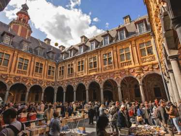 Symbole de la gloire commerciale passée de Lille, la Vieille Bourse servait autrefois de bourse lorsque la ville était sous domination espagnole. 24 maisons de marchands, construites dans le même style ornemental, entourent une cour intérieure voûtée abritant aujourd'hui un marché aux livres d'occasion. Bien que la plupart des ouvrages usagés, des bandes dessinées dépassées et des vieux journaux proposés soient en français, vous en trouverez en anglais et même en Ch'ti, le dialecte local. Mieux encore, vous trouverez des cartes et des affiches rétro, de quoi égayer un mur vide chez vous. La Vieille Bourse est l'endroit idéal pour paresser et un lieu apprécié des joueurs d'échecs locaux ; en été, vous y trouverez des danseurs de tango répétant leurs pas le dimanche soir.