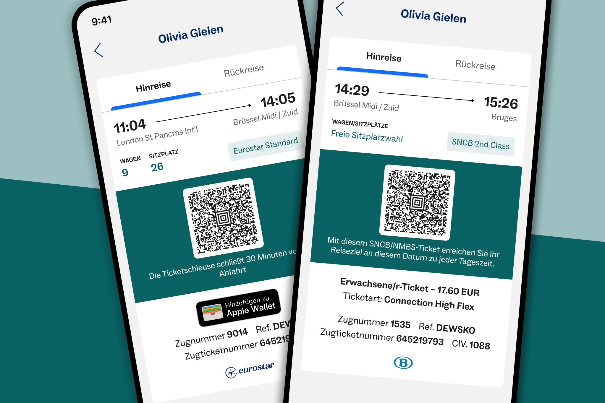 Für jeden Streckenabschnitt erhalten Sie separate Zugtickets (ein Ticket für den Eurostar-Zug und ein Ticket für den SNCB/NMBS-Zug). Jedes Zugticket entspricht einem separaten Beförderungsvertrag.