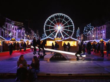 La Grande roue Lotto illumine la Vismet avec ses 18 000 ampoules scintillantes et s’élève à 55 mètres, offrant un panorama unique sur la ville.