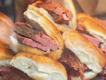 Optez pour une garniture classique de bœuf salé avec moutarde et cornichons, ou de saumon fumé et fromage frais, et voyez combien de temps, vous pouvez attendre avant de déchirer le sac pour une bouchée.