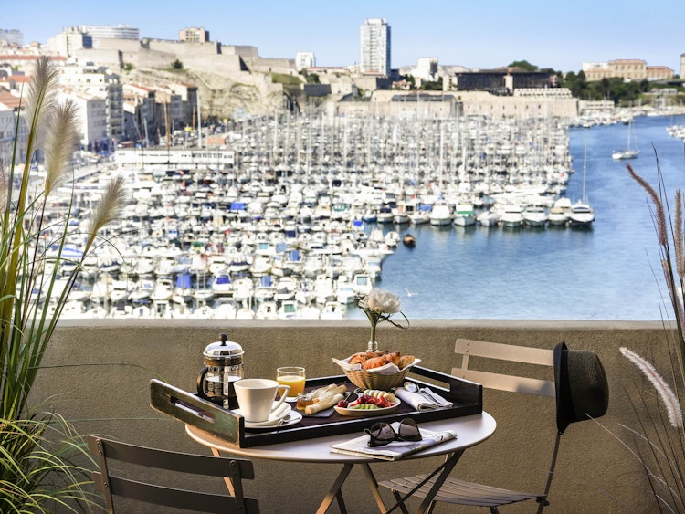 L’hôtel n’a pas de restaurant mais vous pourrez toujours y prendre le petit-déjeuner buffet au bar et y revenir plus tard prendre un verre ou deux tout en contemplant la vue extraordinaire sur le Vieux-Port, plaque tournante du commerce maritime reliant celle qui jut jadis Massilia au reste de l’Empire romain.