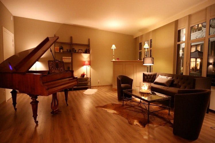 Hotel Acacia offers a range of amenities to enhance your stay. Unwind in the cosy bar, complete with an open fireplace or relax in the lounge featuring a piano. During warmer months, the garden terrace provides a tranquil setting to enjoy a drink or simply soak up the ambiance.