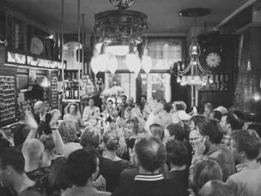Order a vaasje (‘little vase’) of lager and check out the snaps on the walls of the stars in action.
