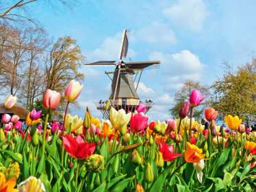 The best place to really experience the magic of spring in the Netherlands is Keukenhof Tulip Garden (opens in a new tab) which is just 30 minutes away from Amsterdam. It’s the world’s largest and most beautiful flower garden with over seven million flower bulbs of 800 different kinds of tulips across 79 manicured acres.