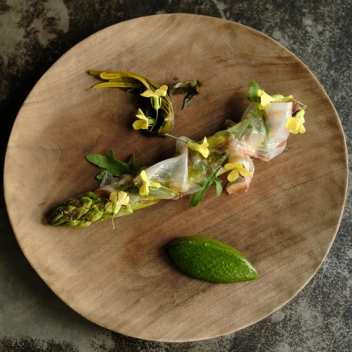 Expect your dish to come bathed in the clearest of consommés and surrounded by a halo of flowers.