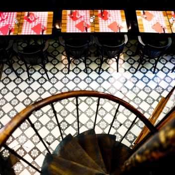The exquisite art nouveau interior steals the show with its decorative sea-green plasterwork, painted panels, mahogany bar, floral tiled floor and glorious stained-glass ceiling. No wonder it was the place of choice for Edith Piaf and her lover.