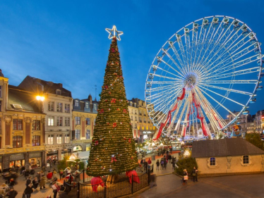 The Christmas market in Lille is in the centre of town with around 90 stalls on Place Rihour, and the massive Christmas tree and Ferris wheel on nearby Grand Place, so it’s very compact and just 10 mins walk from the station.