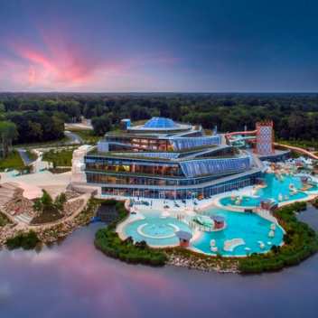This eco-resort is located just 6 km away from Disneyland® Paris and can be reached by paid shuttle or taxi from the Eurostar station at Marne-la-Vallée. Guests will enjoy unlimited access to five immersive worlds during their stay, including the huge Aqualagon®.