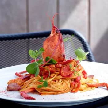 On warm days, the outdoor terrace is a must, accompanied by a sundowner and a rich bowl of lobster linguine or Iberico pork with bacon and an indulgent port-based gravy.